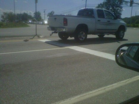 This is also at a red light. And I ask why? Just…why? Is it really that hard to drive decently? At least the woman wasn’t blocking anything, but this guy is right in the way of anyone taking a left from the right side of the picture. It’s just terrible driving. I can’t say I would feel bad if he got clipped by the back end of a semi-truck.